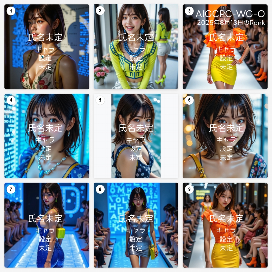 2025 年 8 月 13 日時点における、AIGCPC-WG-O のキャラクター画像ランキングを作成しました。